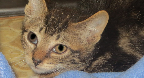 And Hoot, his brother, the brown tabby tux, is improving too. You can see the ulcer on his right cornea. Hoot is shyer so far than Holler, his brother. But he'll come around.