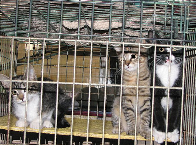 Three kittens, the girl in the middle, from Old School homeless camp in Cascadia, fixed Wednesday.