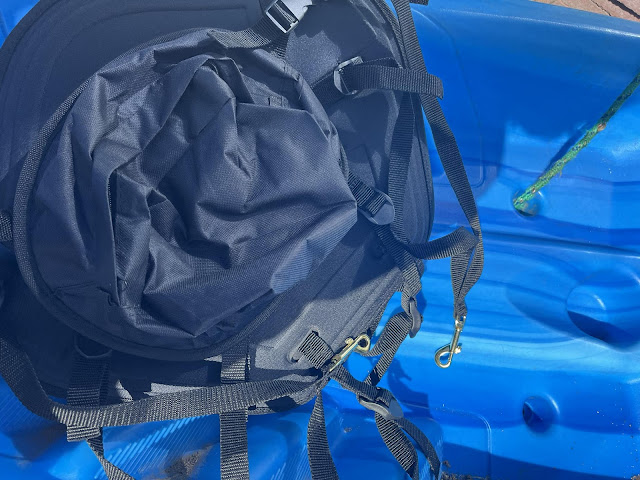 I did not take a photo of the new seat in place yet, and I unclipped it and put it back in its storage bag, where it will stay unless I'm heading to the lake, to extend its longevity.